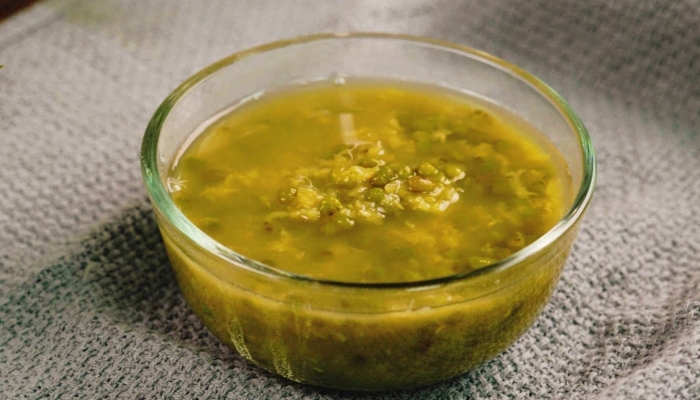 5、汤豆分离:将绿豆开水入锅煮3到5分钟后,再将汤水和豆子分离,接着再将绿豆再次入锅加一点开水来煮烂,煮出沙来,最后再吃豆子。