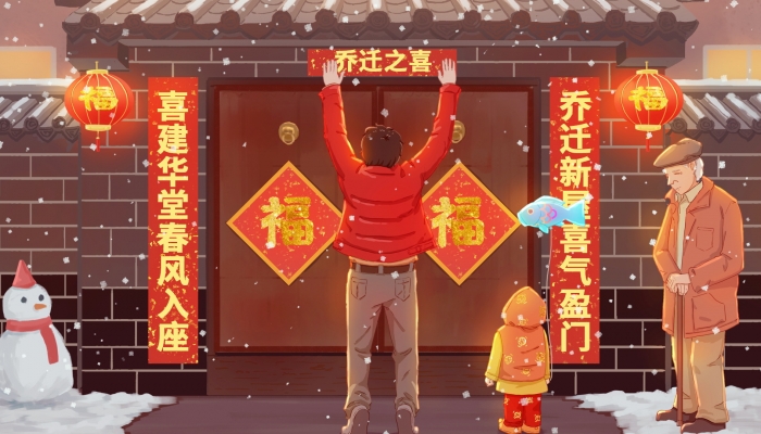 贴春联的寓意是辟邪除灾、迎祥纳福,象征着美好的祝愿和愿景。春联俗称“门对”、“春贴”、“对联”、“对子”、雅称“楹联”。春联一般都是红底黑字或者红底金字,再配以吉祥的纹饰,烘托了新春的喜庆和欢乐的气氛。特别是春联中的一些吉祥的纹饰,如:鱼,寓意年年有余,表达了人们对来年的美好期望和避凶免难之意。春联俗称“门对”、“春贴”、“对联”、“对子”、雅称“楹联”。春联一般都是红底黑字或者红底金字,再配以吉祥的纹饰,烘托了新春的喜庆和欢乐的气氛。特别是春联中的一些吉祥的纹饰,如:鱼,寓意年年有余,表达了人们对来年的美好期望和避凶免难之意,喜庆的大红春联贴门上是对联的一种,应在春节时张贴,故春联的一个源头是桃符。最初人们以桃木刻人形挂在门旁以避邪,后来画门神像于桃木上,再简化为在桃木板上题写门神名字。春联的另一来源是春贴,古人在立春日多贴“宜春”二字,后渐发展为春联。
