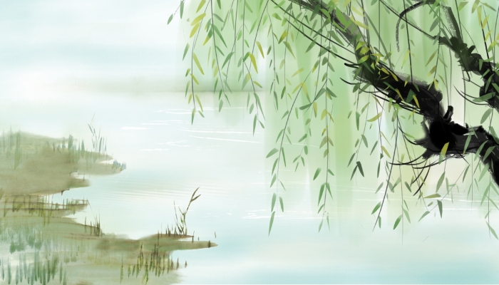 4、冬去春来,杨柳叶绿,温暖的阳光照耀着大地。