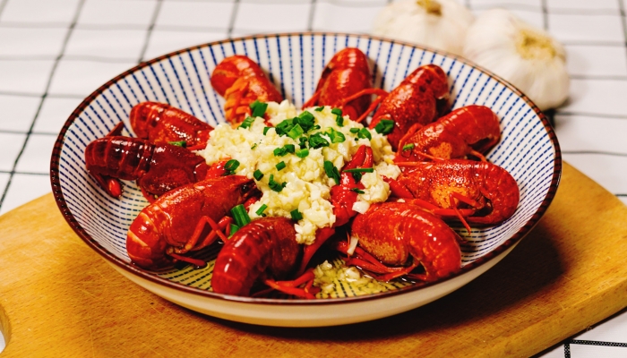 5、烤制:将处理好的小龙虾放入烤箱中烤制,这样既可以去除腥味,又能增加虾的香味。