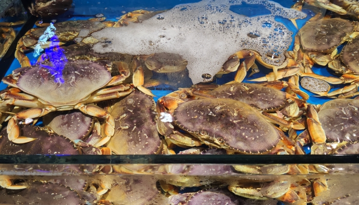 螃蟹的血液颜色在一些情况下会发生变化。这通常发生在螃蟹接触到氧气含量较低的环境中。当螃蟹的血液失去氧气后,铜血蓝蛋白会变成无色或透明的状态,此时血液呈现出灰色或淡色。当这种失去氧气的透明血液再次接触到氧气时,它会变成红色。这是因为铜血蓝蛋白在氧气作用下会氧化,从而变成红色。所以,螃蟹的血液在这种情况下会由蓝色变为红色。这种现象通常在螃蟹被捕捞后或在水中暴露在空气中时被观察到,因为这些情况下螃蟹的血液失去了氧气。但一旦螃蟹再次处于富氧环境中,血液就会再次变成蓝色。