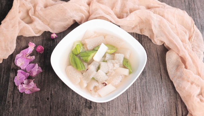 1、用温水泡发:先将40℃左右的温水倒入容器中,将竹荪的菌蕾朝上放置,再加入足量清水,以完全没过竹荪为度。最后加入少量白醋,搅拌均匀,泡发约15分钟。