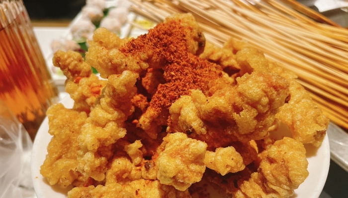 4、复炸技巧:炸肉时,第一次炸至定型后,需要进行复炸。复炸可以使肉条更加酥脆,通常需要炸至表面金黄酥脆。复炸的时间一般为20秒左右,这样可以确保外皮更加酥脆。