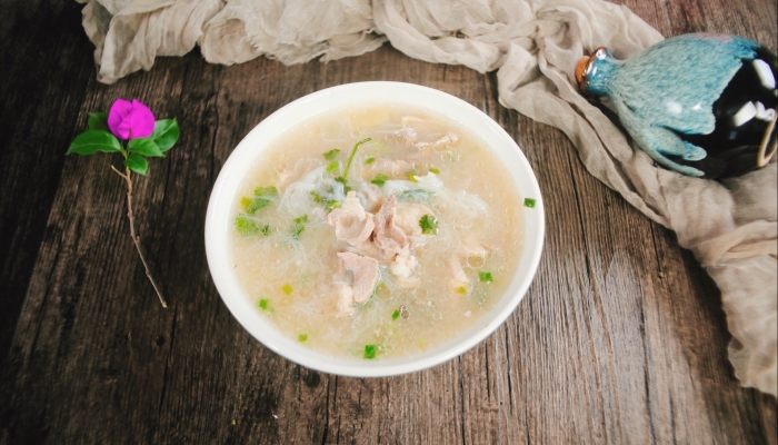 17、粉丝:质地柔软,能吸收汤汁中的鲜味,入口爽滑,与羊肉搭配,味道鲜美。